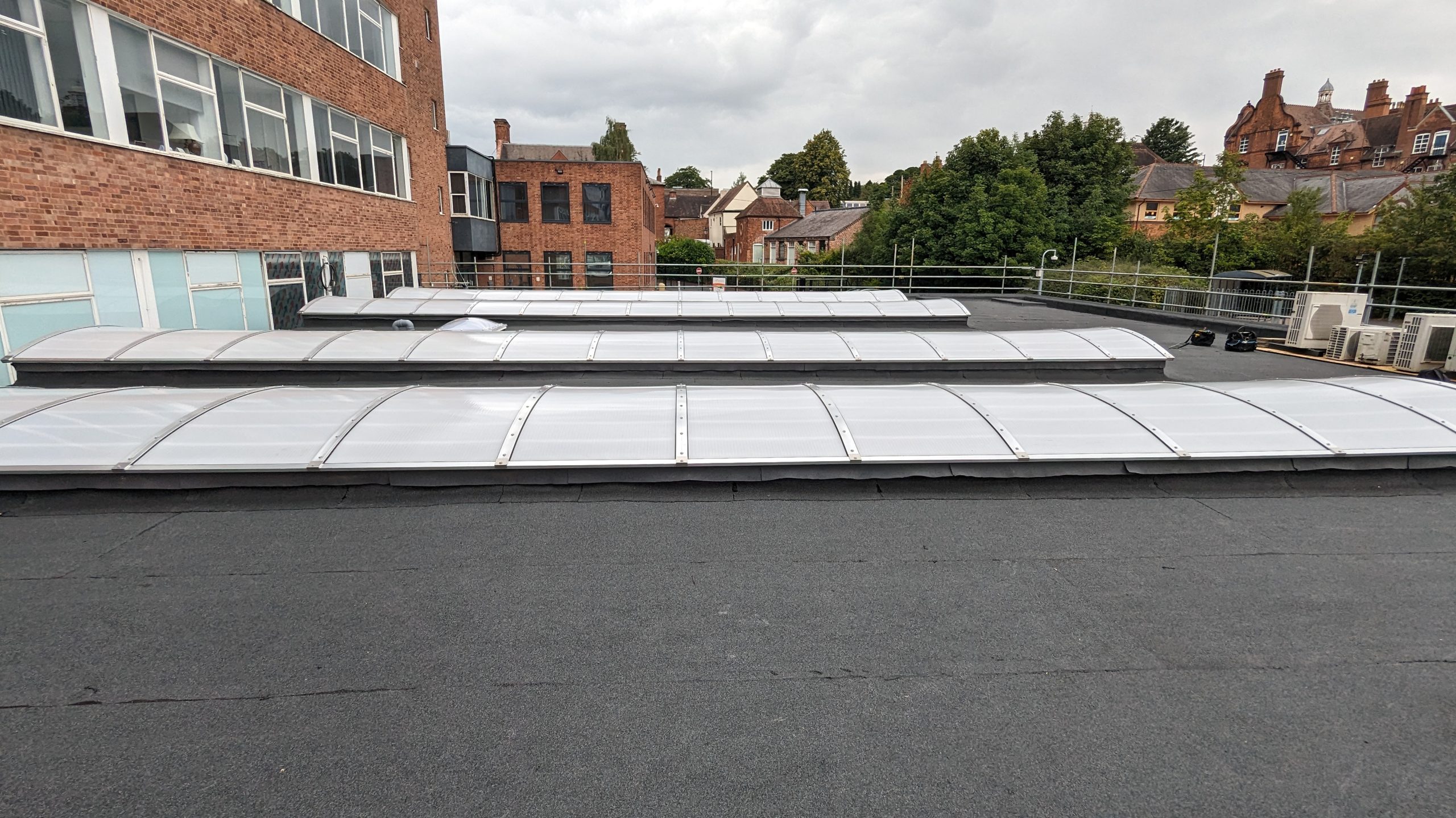 External work packages consisted of notifiable and non-notifiable Asbestos removal prior to replacement of over 200 windows and doors, re-covering of 7 existing flat roofs and replacement of associated roof lights, removal and reinstatement of ventilation services to facilitate roof works, service road Tarmac re-surfacing and minor decorations to existing structures.